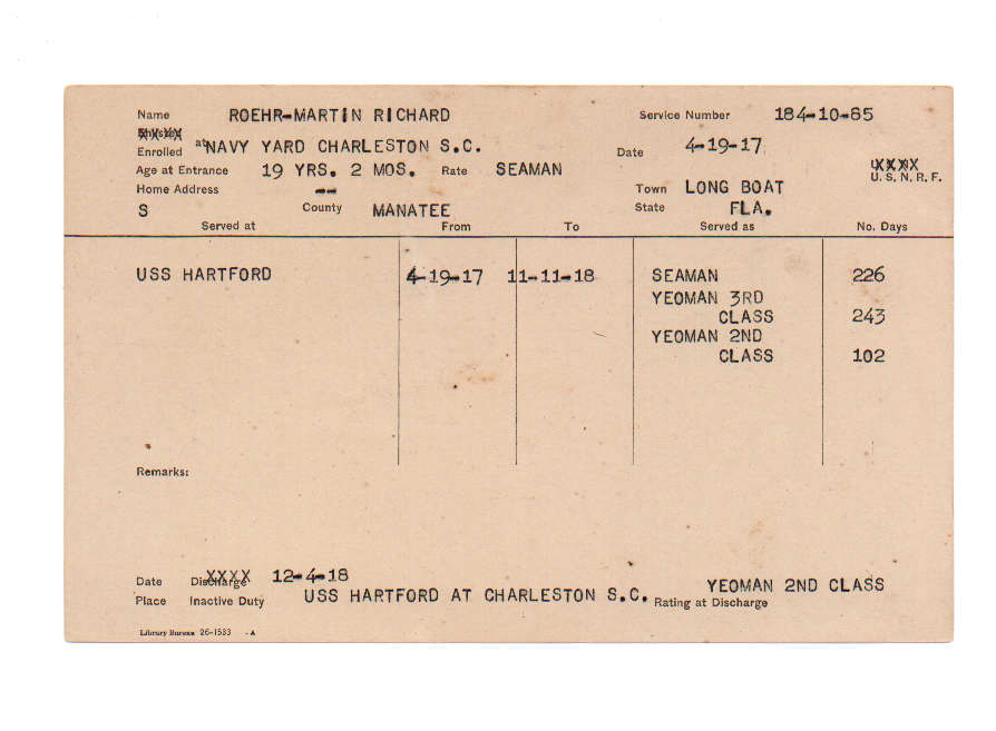 Florida. Military Dept. Martin Richard Roehr. . State Archives of Florida, Florida Memory. <https://www.floridamemory.com/items/show/226341>, accessed 21 December 2025.