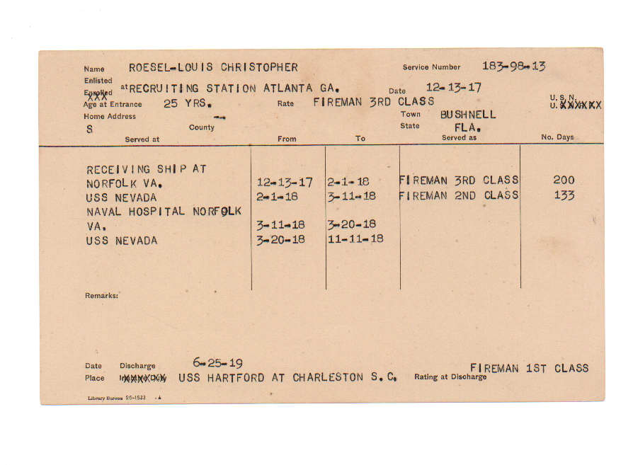 Florida. Military Dept. Louis Christopher Roesel. . State Archives of Florida, Florida Memory. <https://www.floridamemory.com/items/show/226342>, accessed 21 December 2025.