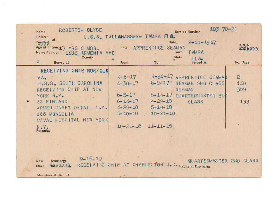 Florida. Military Dept. Clyde Roberts. . State Archives of Florida, Florida Memory. Accessed 22 Dec. 2025.<https://www.floridamemory.com/items/show/226352>