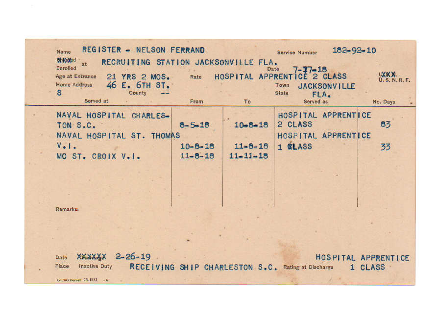 Florida. Military Dept. Nelson Ferrand Register. . State Archives of Florida, Florida Memory. Accessed 6 Dec. 2025.<https://www.floridamemory.com/items/show/226455>