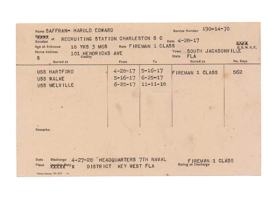 Florida. Military Dept. Harold Edward Saffran. . State Archives of Florida, Florida Memory. <https://www.floridamemory.com/items/show/226648>, accessed 6 December 2025.