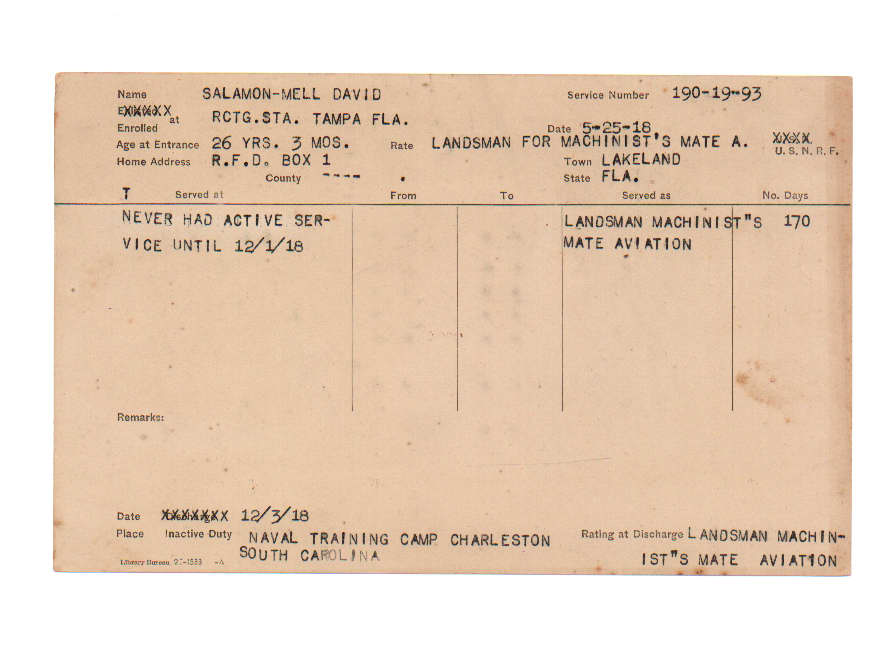 Florida. Military Dept. Mell David Salamon. . State Archives of Florida, Florida Memory. <https://www.floridamemory.com/items/show/226652>, accessed 6 December 2025.