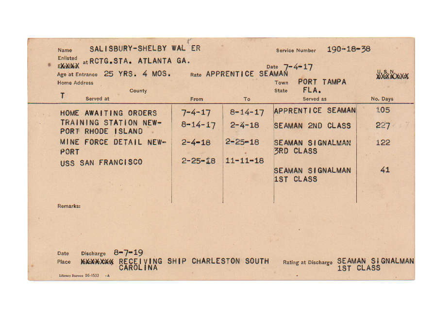 Florida. Military Dept. Shelby Walker Salisbury. . State Archives of Florida, Florida Memory. <https://www.floridamemory.com/items/show/226654>, accessed 5 December 2025.