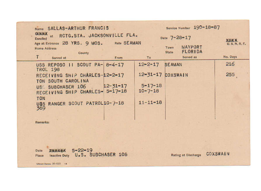 Florida. Military Dept. Arthur Francis Sallas. . State Archives of Florida, Florida Memory. <https://www.floridamemory.com/items/show/226655>, accessed 5 December 2025.