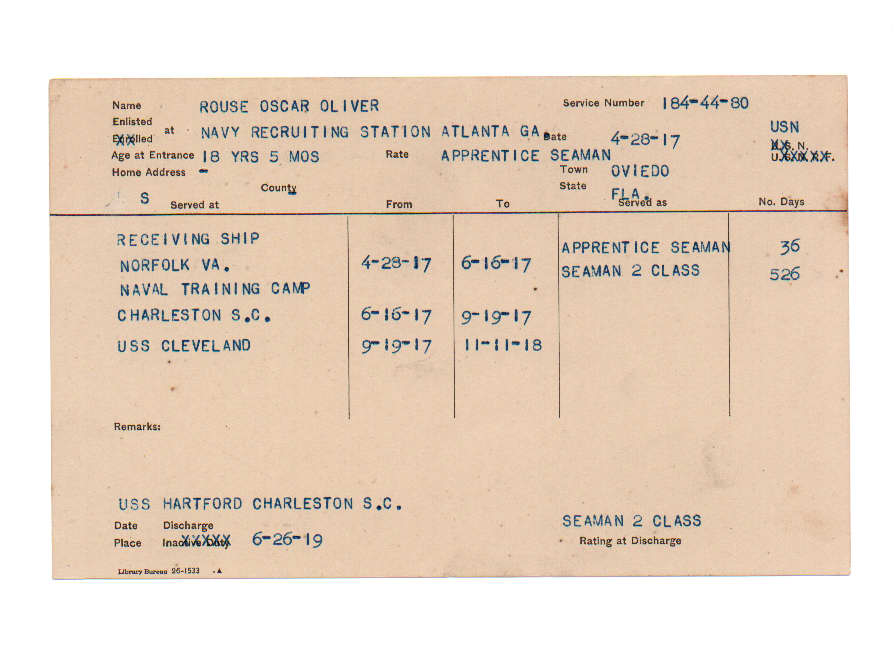 Florida. Military Dept. Oscar Oliver Rouse. . State Archives of Florida, Florida Memory. Accessed 6 Dec. 2025.<https://www.floridamemory.com/items/show/226663>