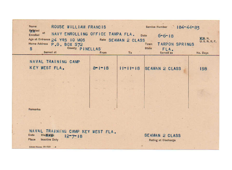 Florida. Military Dept. William Francis Rouse. . State Archives of Florida, Florida Memory. Accessed 6 Dec. 2025.<https://www.floridamemory.com/items/show/226664>