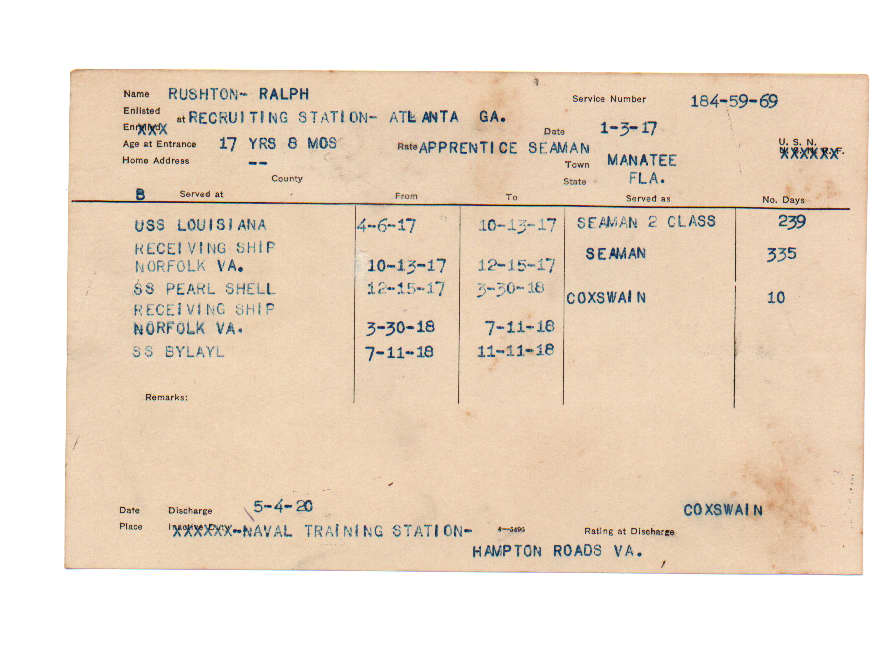 Florida. Military Dept. Ralph Rushton. . State Archives of Florida, Florida Memory. <https://www.floridamemory.com/items/show/226685>, accessed 19 December 2025.