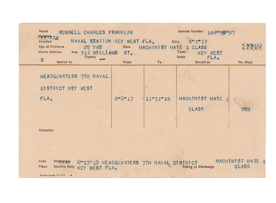 Florida. Military Dept. Charles Franklin Russell. . State Archives of Florida, Florida Memory. <https://www.floridamemory.com/items/show/226692>, accessed 20 December 2025.