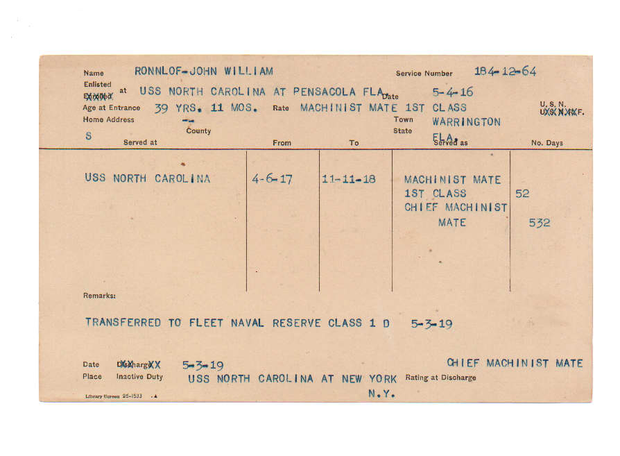 Florida. Military Dept. John William Ronnlof. . State Archives of Florida, Florida Memory. <https://www.floridamemory.com/items/show/226708>, accessed 22 December 2025.