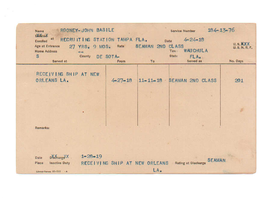 Florida. Military Dept. John Basile Rooney. . State Archives of Florida, Florida Memory. <https://www.floridamemory.com/items/show/226713>, accessed 22 December 2025.