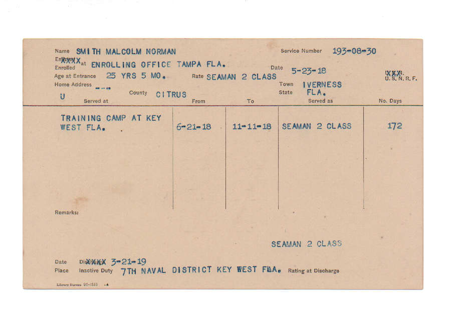 Florida. Military Dept. Malcolm Norman Smith. . State Archives of Florida, Florida Memory. <https://www.floridamemory.com/items/show/226728>, accessed 23 December 2025.