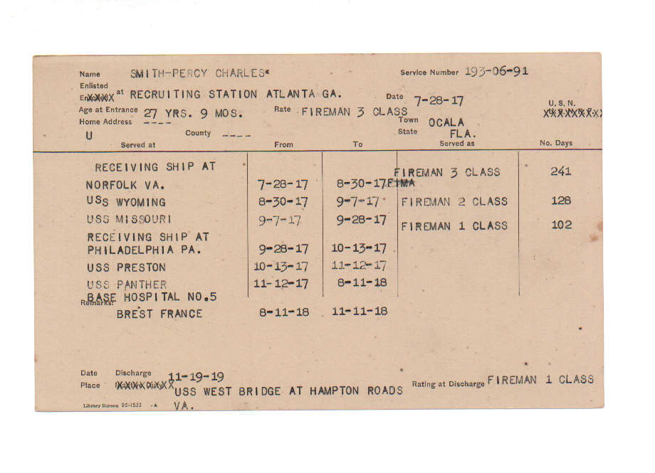 Florida. Military Dept. Percy Charles Smith. . State Archives of Florida, Florida Memory. <https://www.floridamemory.com/items/show/226733>, accessed 23 December 2025.