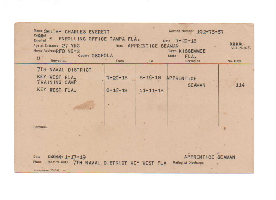 Florida. Military Dept. Charles Everett Smith. . State Archives of Florida, Florida Memory. <https://www.floridamemory.com/items/show/226752>, accessed 17 December 2025.