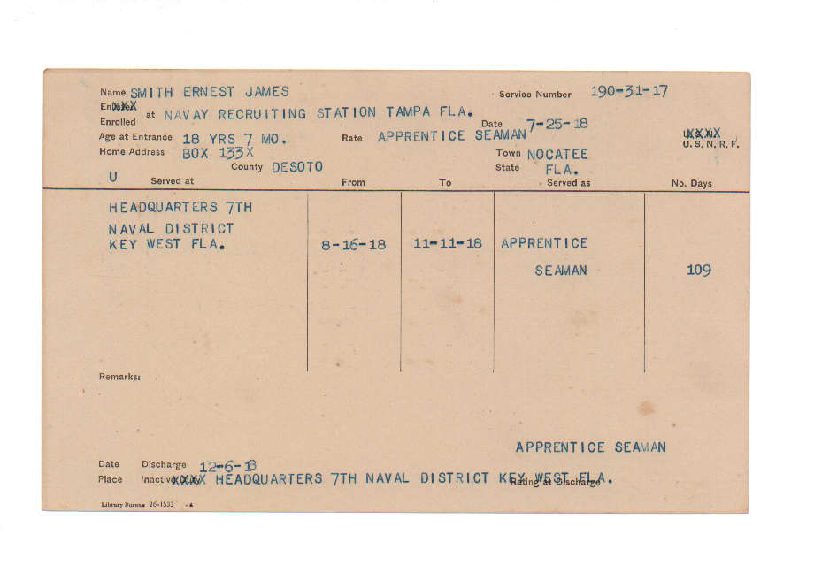 Florida. Military Dept. Ernest James Smith. . State Archives of Florida, Florida Memory. <https://www.floridamemory.com/items/show/226770>, accessed 6 December 2025.