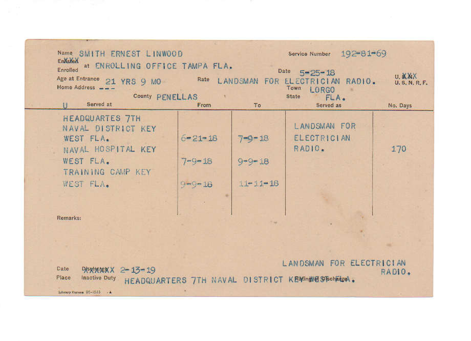 Florida. Military Dept. Ernest Linwood Smith. . State Archives of Florida, Florida Memory. <https://www.floridamemory.com/items/show/226771>, accessed 6 December 2025.