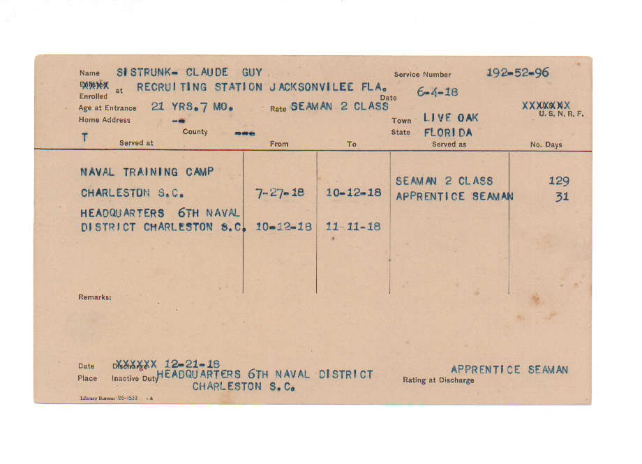Florida. Military Dept. Claude Guy Sistrunk. . State Archives of Florida, Florida Memory. Accessed 6 Dec. 2025.<https://www.floridamemory.com/items/show/226783>