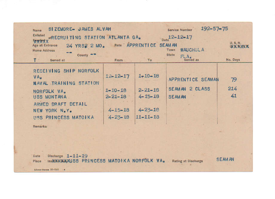 Florida. Military Dept. James Alvah Sizemore. . State Archives of Florida, Florida Memory. <https://www.floridamemory.com/items/show/226787>, accessed 5 December 2025.