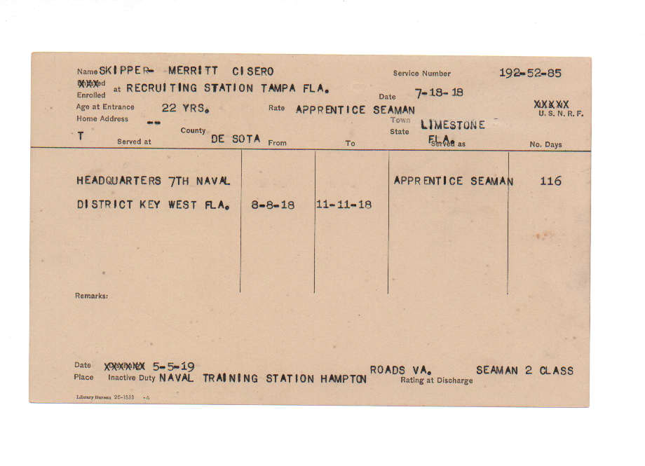 Florida. Military Dept. Merrit Cisero Skipper. . State Archives of Florida, Florida Memory. <https://www.floridamemory.com/items/show/226795>, accessed 6 December 2025.