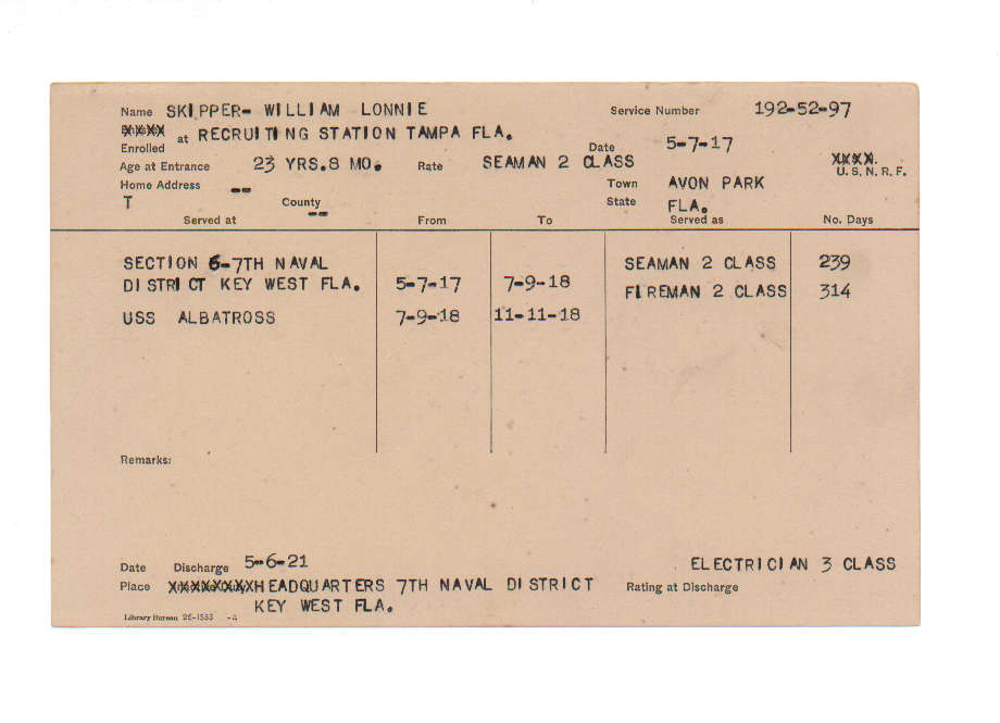 Florida. Military Dept. William Lonnie Skipper. . State Archives of Florida, Florida Memory. <https://www.floridamemory.com/items/show/226798>, accessed 6 December 2025.