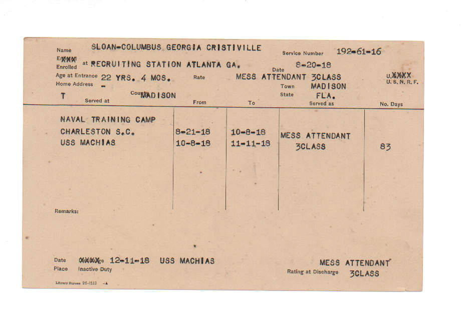 Florida. Military Dept. Columbus Georgia Cristiville Sloan. . State Archives of Florida, Florida Memory. <https://www.floridamemory.com/items/show/226805>, accessed 8 December 2025.