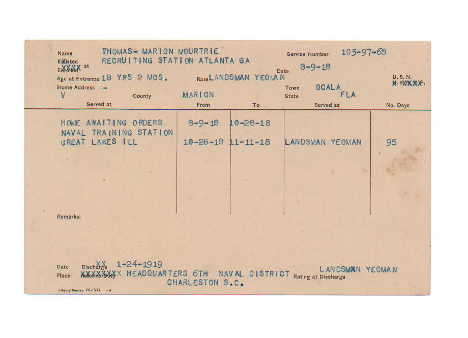 Florida. Military Dept. Marion Mourtrie Thomas. . State Archives of Florida, Florida Memory. <https://www.floridamemory.com/items/show/229652>, accessed 2 January 2026.