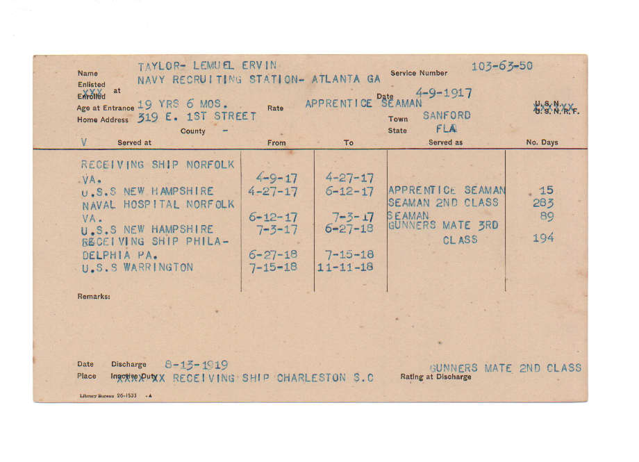 Florida. Military Dept. Lemuel Ervin Taylor. . State Archives of Florida, Florida Memory. Accessed 31 Dec. 2025.<https://www.floridamemory.com/items/show/229683>