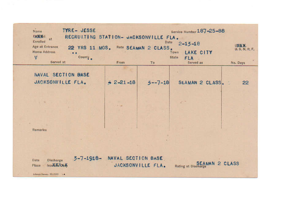 Florida. Military Dept. Jesse Tyre. . State Archives of Florida, Florida Memory. <https://www.floridamemory.com/items/show/230743>, accessed 13 December 2025.