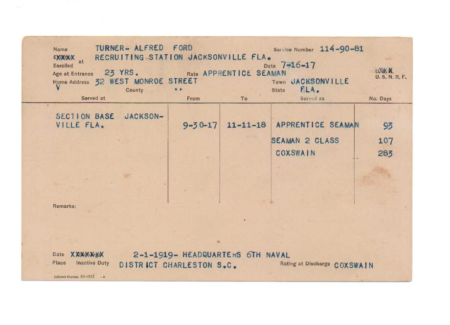 Florida. Military Dept. Alfred Ford Turner. . State Archives of Florida, Florida Memory. Accessed 6 Dec. 2025.<https://www.floridamemory.com/items/show/230780>