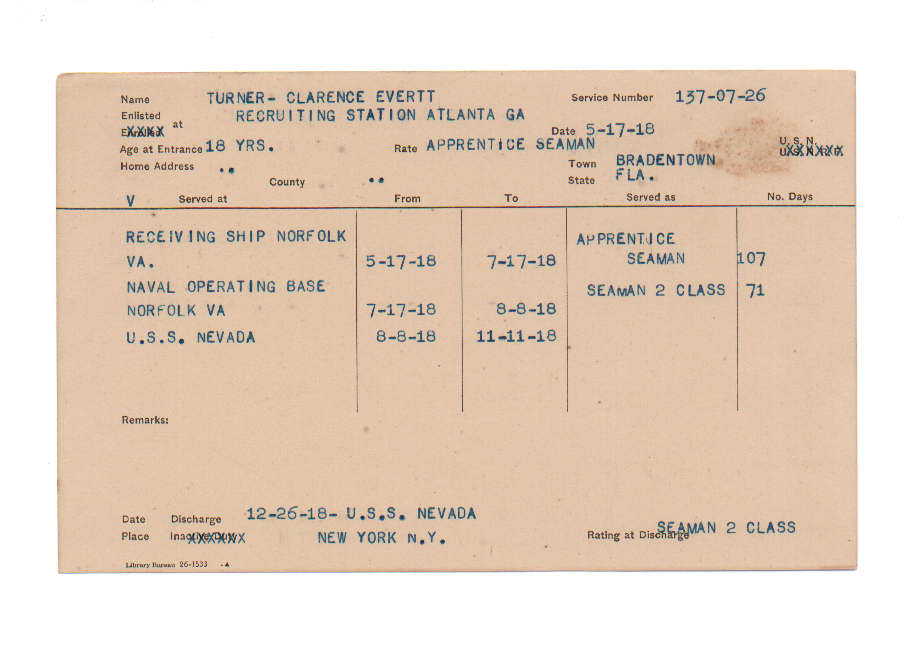 Florida. Military Dept. Clarence Everett Turner. . State Archives of Florida, Florida Memory. Accessed 6 Dec. 2025.<https://www.floridamemory.com/items/show/230782>