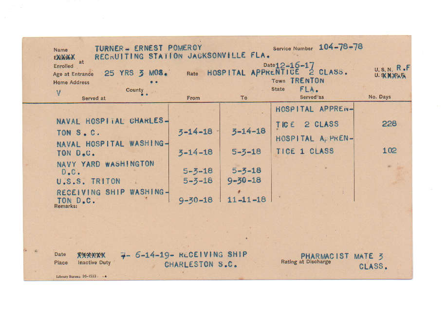 Florida. Military Dept. Ernest Pomeroy Turner. . State Archives of Florida, Florida Memory. <https://www.floridamemory.com/items/show/230785>, accessed 8 December 2025.