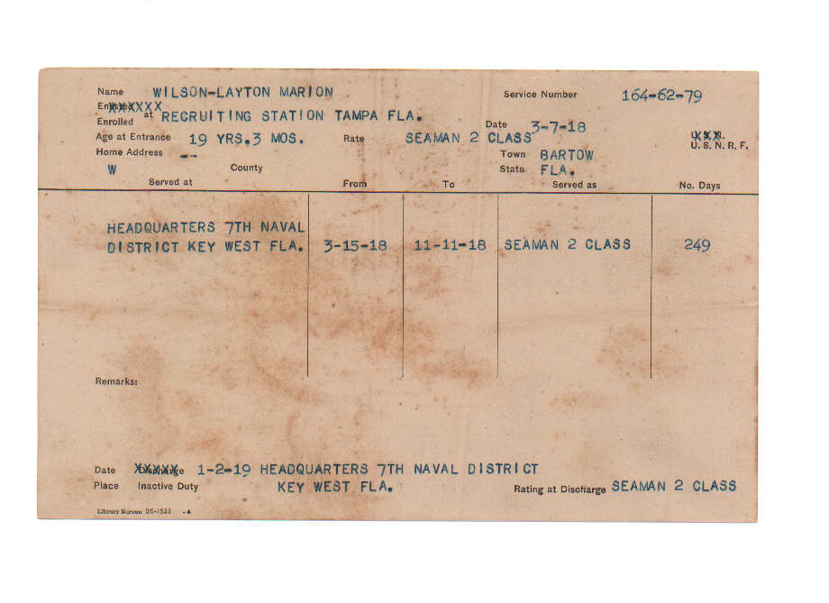 Florida. Military Dept. Layton Marion Wilson. . State Archives of Florida, Florida Memory. <https://www.floridamemory.com/items/show/230799>, accessed 19 December 2025.