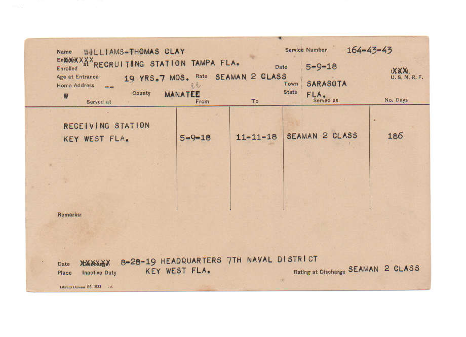 Florida. Military Dept. Thomas Clay Williams. . State Archives of Florida, Florida Memory. <https://www.floridamemory.com/items/show/230827>, accessed 21 December 2025.