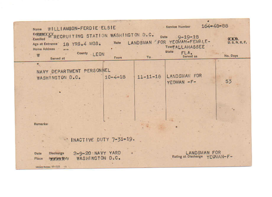 Florida. Military Dept. Ferdie Elsie Williamson. . State Archives of Florida, Florida Memory. Accessed 22 Dec. 2025.<https://www.floridamemory.com/items/show/230833>