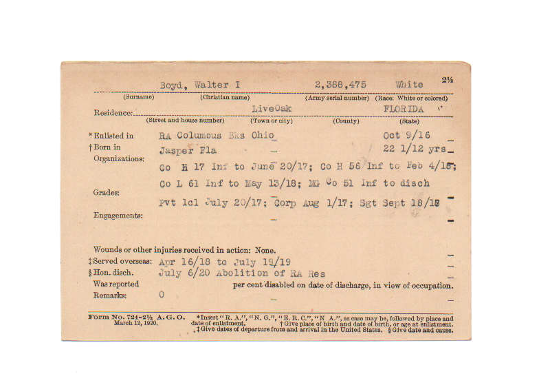 Florida. Military Dept. Walter I Boyd. . State Archives of Florida, Florida Memory. <https://www.floridamemory.com/items/show/230850>, accessed 23 December 2025.