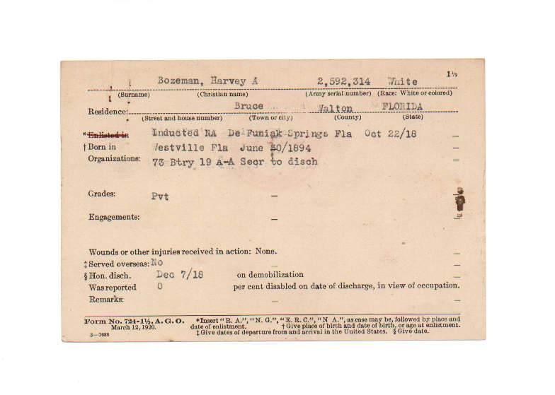 Florida. Military Dept. Harvey A Bozeman. . State Archives of Florida, Florida Memory. <https://www.floridamemory.com/items/show/230901>, accessed 27 December 2025.