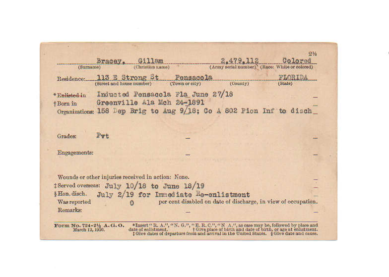 Florida. Military Dept. Gillam Bracey. . State Archives of Florida, Florida Memory. <https://www.floridamemory.com/items/show/230913>, accessed 29 December 2025.