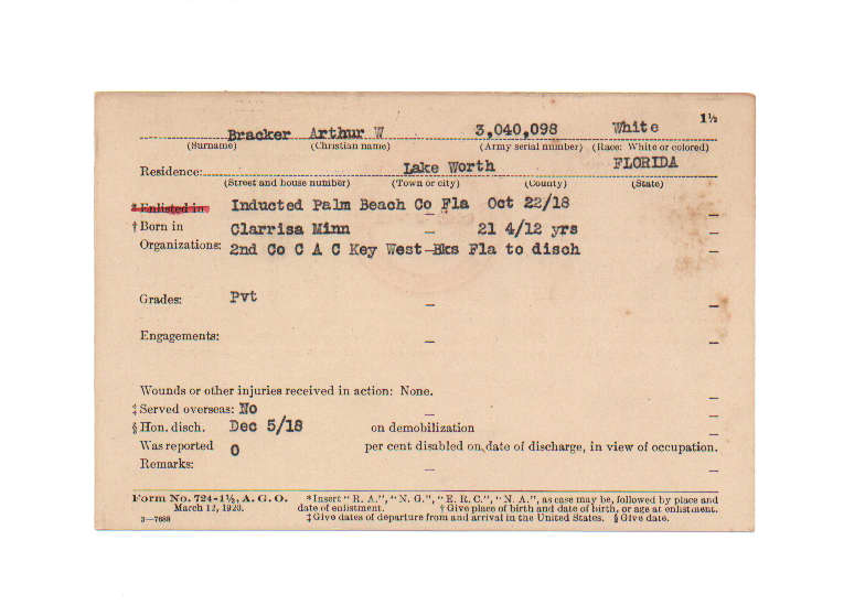 Florida. Military Dept. Arthur W Bracker. . State Archives of Florida, Florida Memory. <https://www.floridamemory.com/items/show/230921>, accessed 29 December 2025.