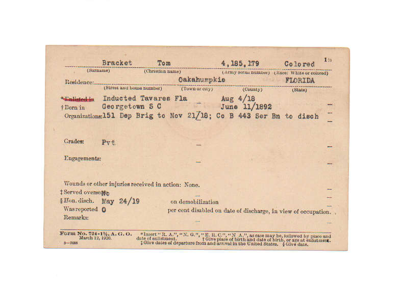 Florida. Military Dept. Tom Bracket. . State Archives of Florida, Florida Memory. Accessed 29 Dec. 2025.<https://www.floridamemory.com/items/show/230922>