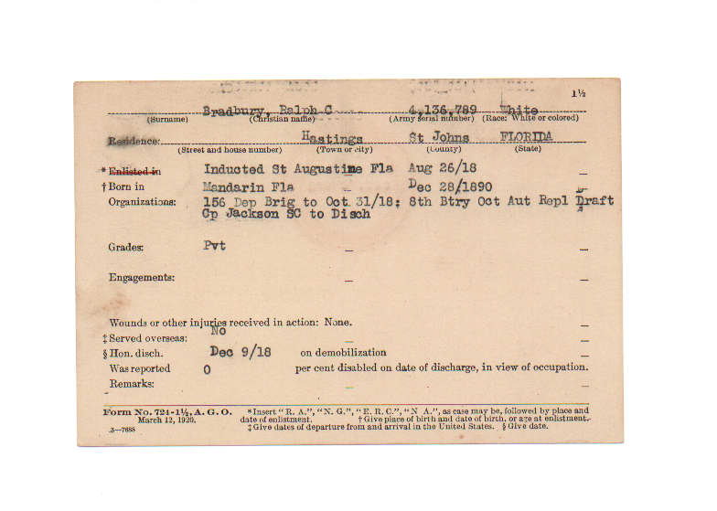Florida. Military Dept. Ralph C Bradbury. . State Archives of Florida, Florida Memory. <https://www.floridamemory.com/items/show/230929>, accessed 30 December 2025.