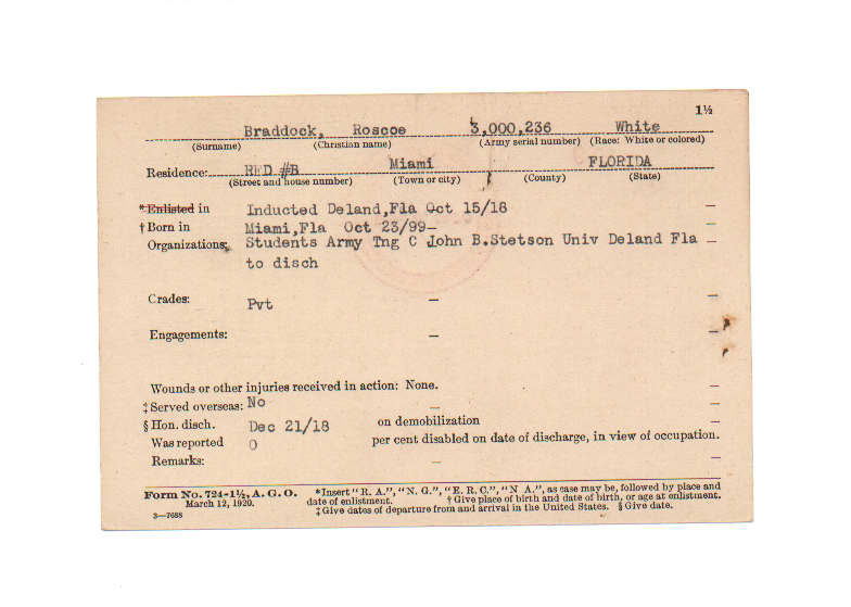 Florida. Military Dept. Roscoe Braddock. . State Archives of Florida, Florida Memory. Accessed 31 Dec. 2025.<https://www.floridamemory.com/items/show/230935>