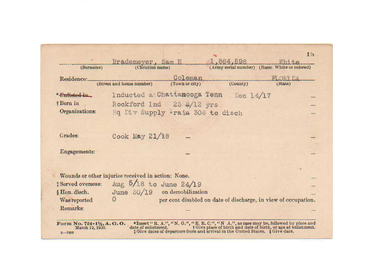 Florida. Military Dept. Sam E Brademeyer. . State Archives of Florida, Florida Memory. Accessed 1 Jan. 2026.<https://www.floridamemory.com/items/show/230941>