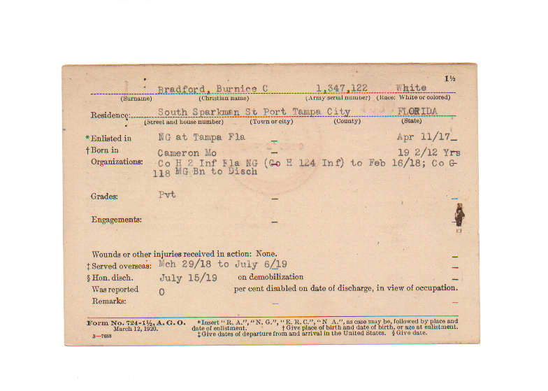 Florida. Military Dept. Burnice C Bradford. . State Archives of Florida, Florida Memory. Accessed 1 Jan. 2026.<https://www.floridamemory.com/items/show/230944>