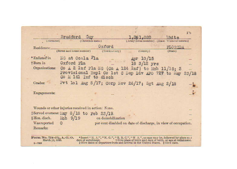 Florida. Military Dept. Guy Bradford. . State Archives of Florida, Florida Memory. <https://www.floridamemory.com/items/show/230947>, accessed 1 January 2026.