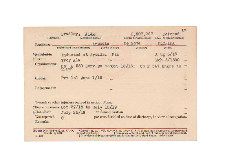 Florida. Military Dept. Alex Bradley. . State Archives of Florida, Florida Memory. Accessed 2 Jan. 2026.<https://www.floridamemory.com/items/show/230961>