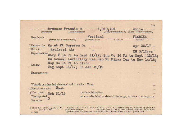 Florida. Military Dept. Francis M Brunson. . State Archives of Florida, Florida Memory. <https://www.floridamemory.com/items/show/231854>, accessed 27 January 2026.
