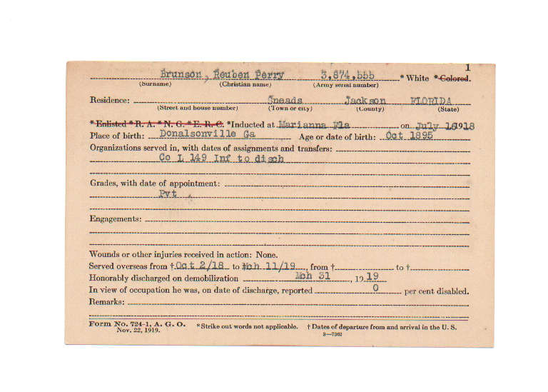 Florida. Military Dept. Reuben Perry Brunson. . State Archives of Florida, Florida Memory. Accessed 26 Jan. 2026.<https://www.floridamemory.com/items/show/231860>