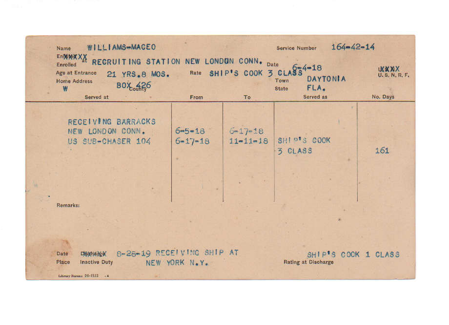 Florida. Military Dept. Maceo Williams. . State Archives of Florida, Florida Memory. Accessed 20 Dec. 2025.<https://www.floridamemory.com/items/show/231982>
