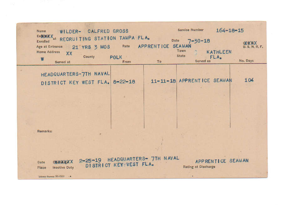 Florida. Military Dept. Calfred Gross Wilder. . State Archives of Florida, Florida Memory. <https://www.floridamemory.com/items/show/231995>, accessed 21 December 2025.