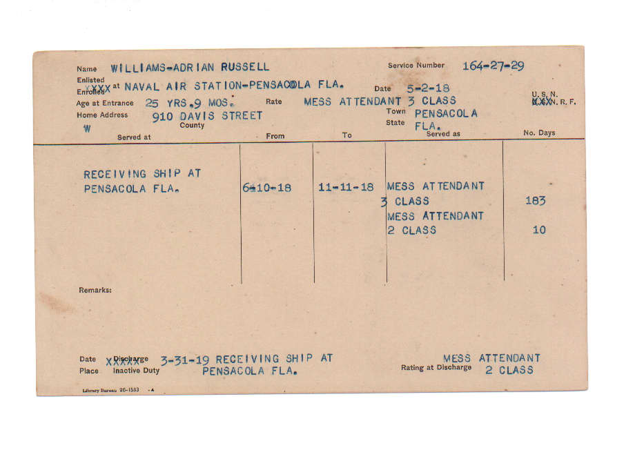 Florida. Military Dept. Adrian Russell Williams. . State Archives of Florida, Florida Memory. <https://www.floridamemory.com/items/show/232007>, accessed 22 December 2025.