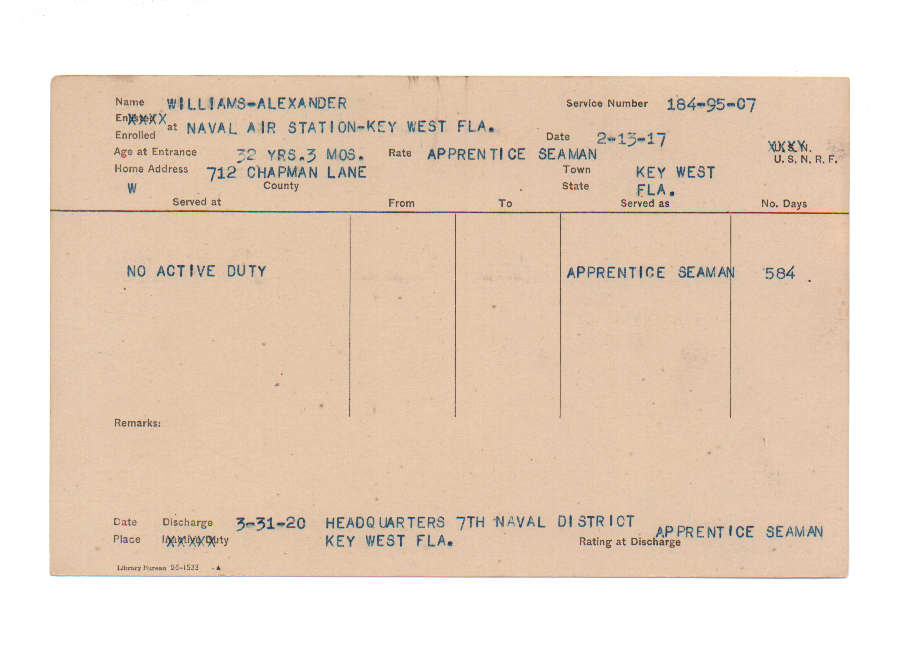 Florida. Military Dept. Alexander Williams. . State Archives of Florida, Florida Memory. Accessed 22 Dec. 2025.<https://www.floridamemory.com/items/show/232008>